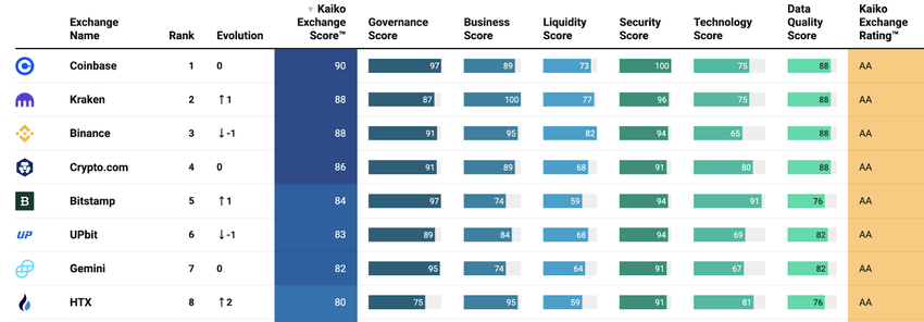 Kaiko: HTX has advanced from 10th to 8th position on Kaiko, a respected platform among North American high-end crypto users, and received an “AA” rating. Kaiko evaluates the comprehensive performance of over 100 mainstream trading platforms worldwide across six key dimensions: governance, liquidity, technology, business capabilities, security, and data quality. This accolade highlights HTX’s excellence in business and technological capabilities, as well as its strong security measures, emphasizing its competitive edge in the high-end market.