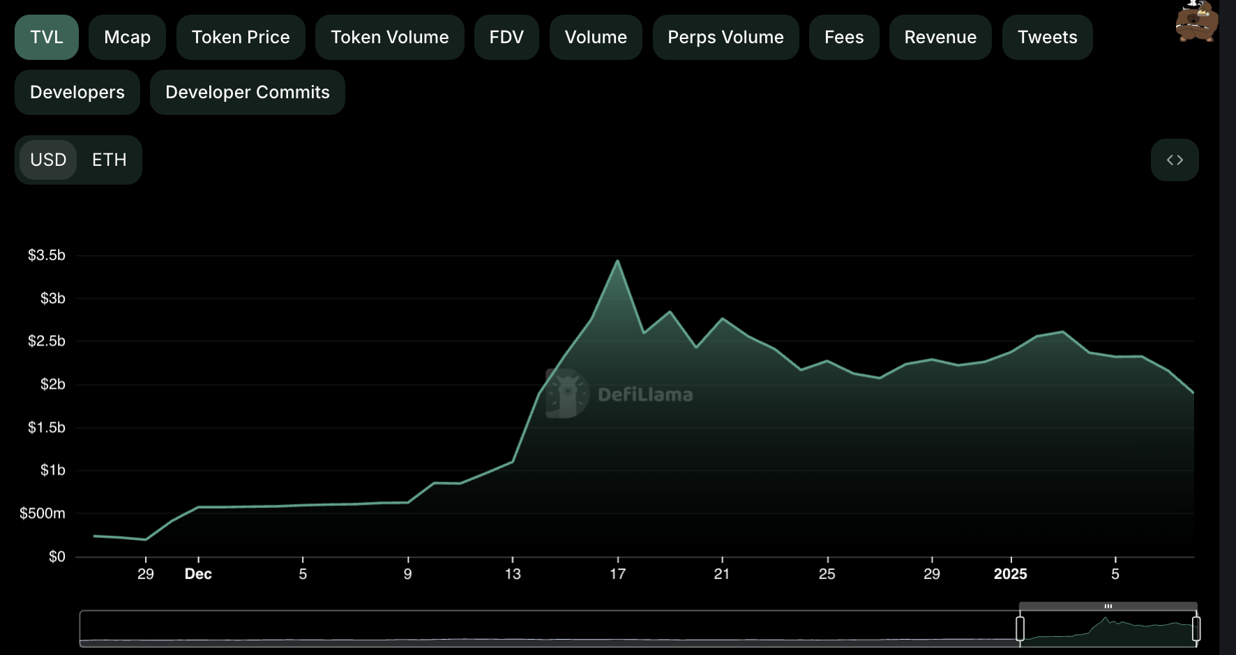 A decline in a protocol’s TVL reflects reduced capital invested or staked within the platform, indicating lower user participation. This often leads to a decrease in the value of its native token, as diminished capital reduces demand for the token.