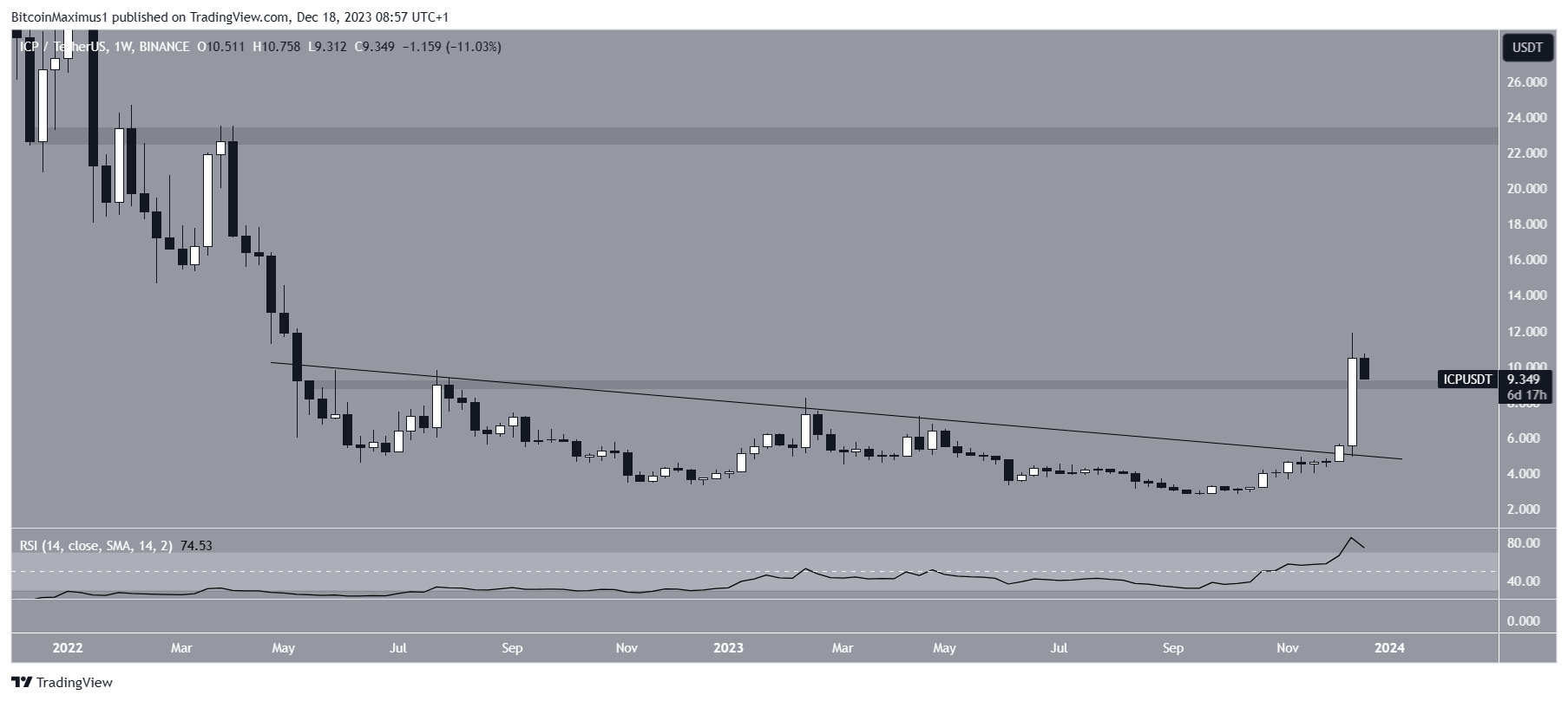 This acceleration caused a breakout from two resistance levels, one diagonal and the other horizontal. On December 16, the ICP price reached a new yearly high of $11.90. This was the highest price since May 2022.