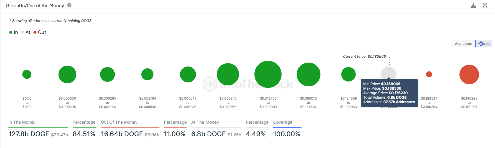 Furthermore, nearly 6.8 billion DOGE, worth over $1.2 billion, is on the brink of profitability, having been purchased in the price range of $0.169 to $0.188.