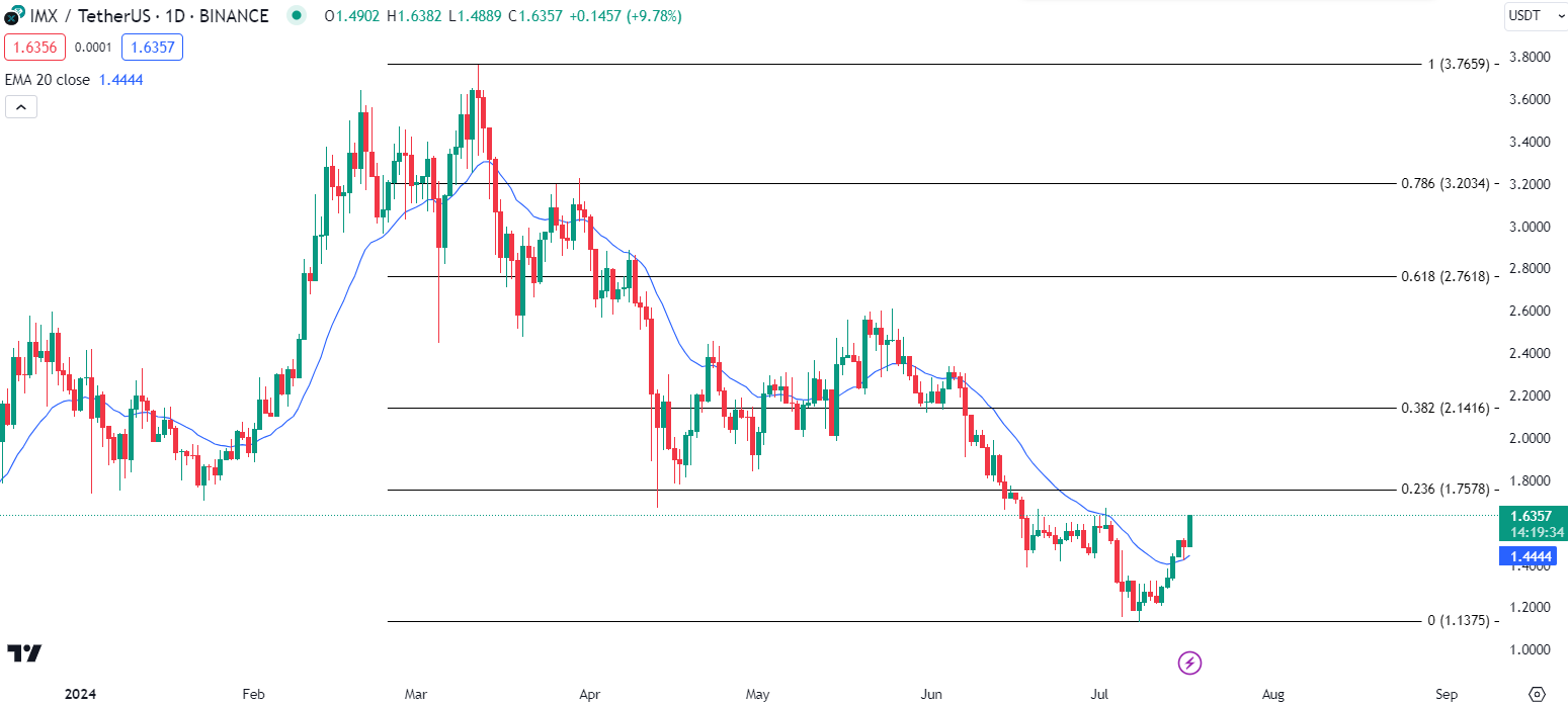 However, if profit-taking ensues and IMX initiates a downtrend, it may trade at a low of $1.13.