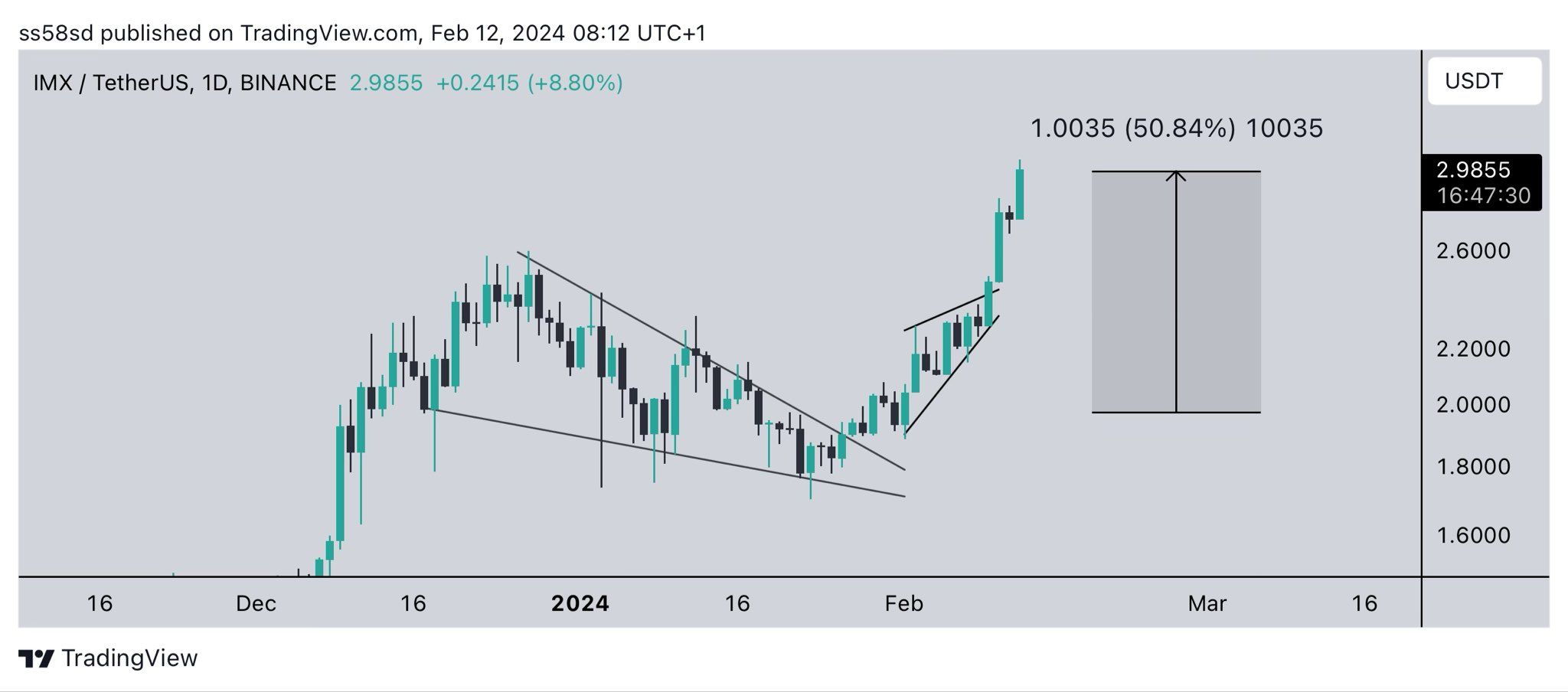 The IMX price has increased swiftly since October 2023. The upward movement culminated with a 2023 high of $2.60 in December.