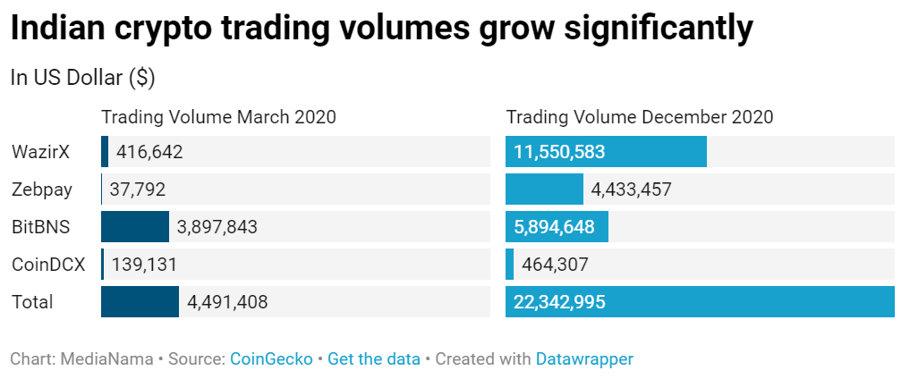 The move will trouble India’s cryptocurrency scene, which has boomed in 2020, with volumes on top exchanges growing by 500%. Many pro-crypto groups and individuals have lobbied the government to establish legal regulations. However, the government has hinted at little and has typically leaned towards a ban.