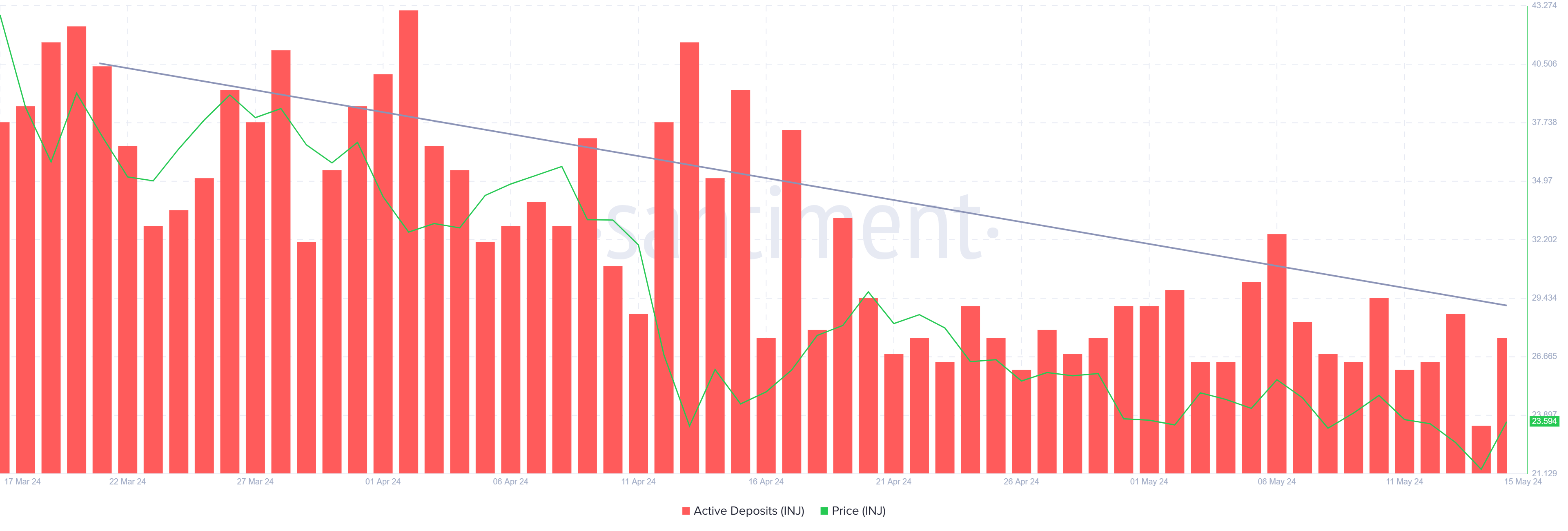 The Injective’s price could recover in the coming days as INJ holders are exhibiting bullishness at the moment. The first indication of this comes from the decline in active deposits. This metric measures the total number of unique addresses that move assets from their wallets to the exchanges.
