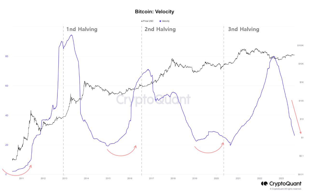 Bitcoin velocity patterns also reinforce the premise that a lot of BTC was traded and accumulated a year ago.