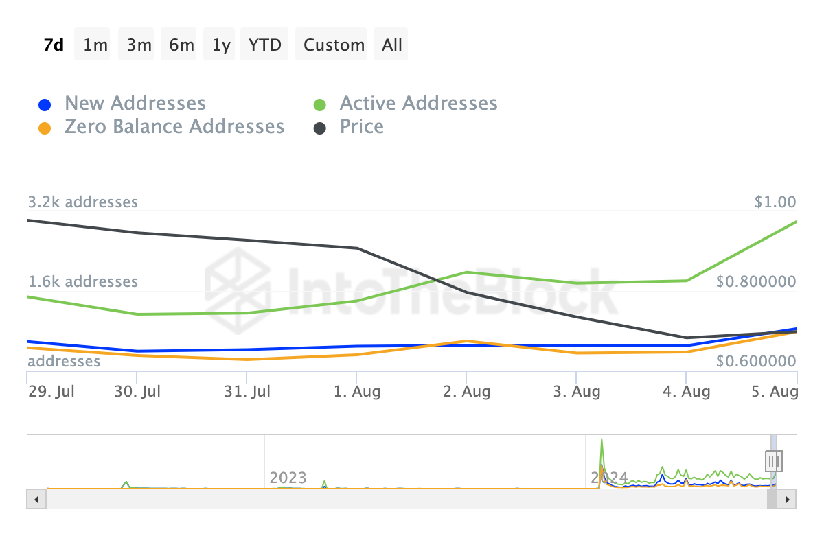 New addresses jumped by 44%, while zero-balance increased by 70% within the same period. The surge in all three metrics indicates that user engagement is clearly present.