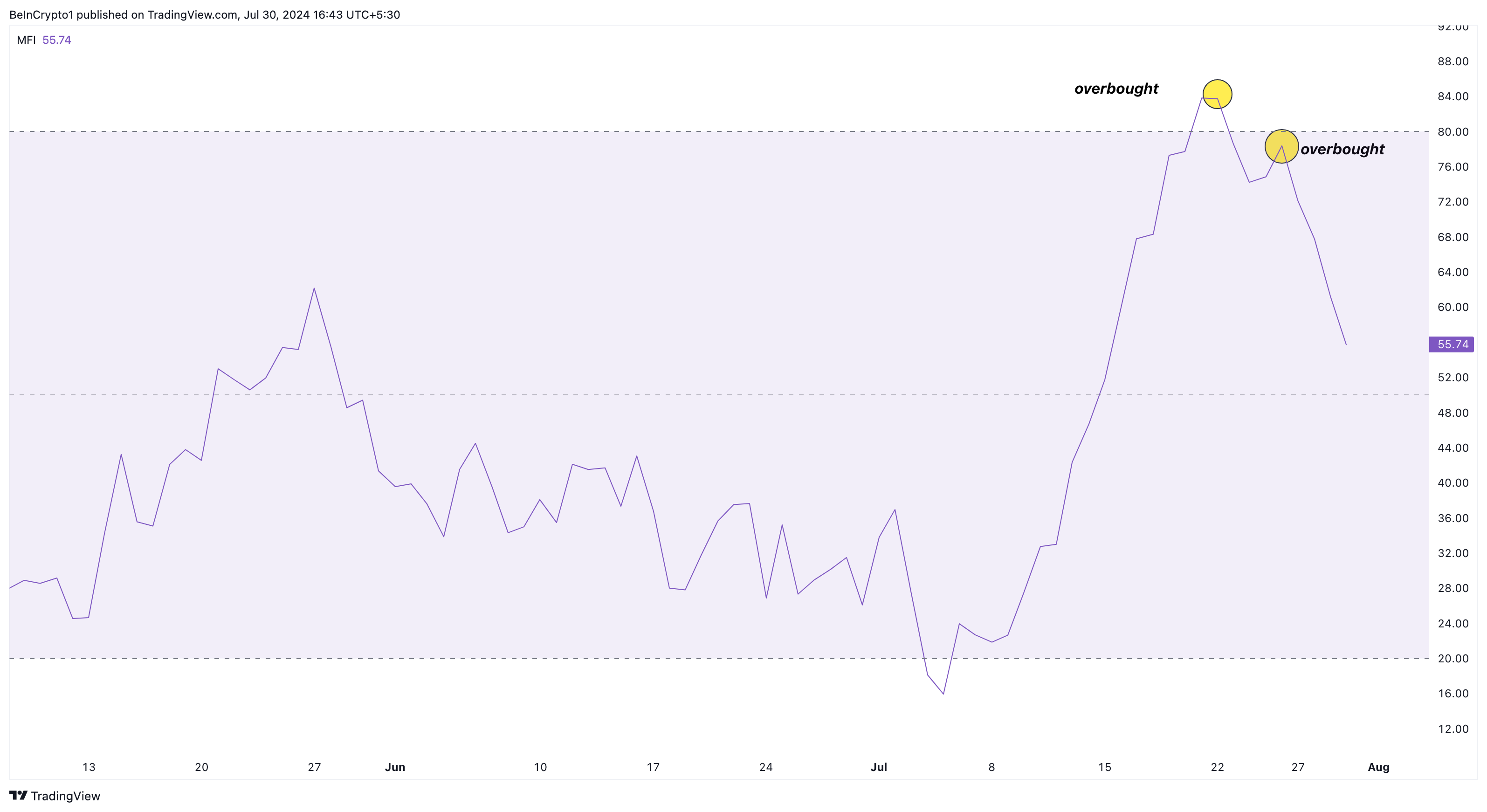 On the daily Internet Computer chart, the token was overbought on July 21, and after the price increase on July 26, it reached the same condition. Consequently, this led to a price retracement, and as more money flows out of the ICP market, the price may continue to drop.