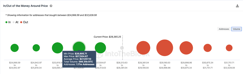 However, the 1.17 million addresses had bought 566,350 BTC at the average price of $27,057 will offer initial support. But, if that bearish momentum grows, a panic sell-off could see the BTC price decline toward $25,000.