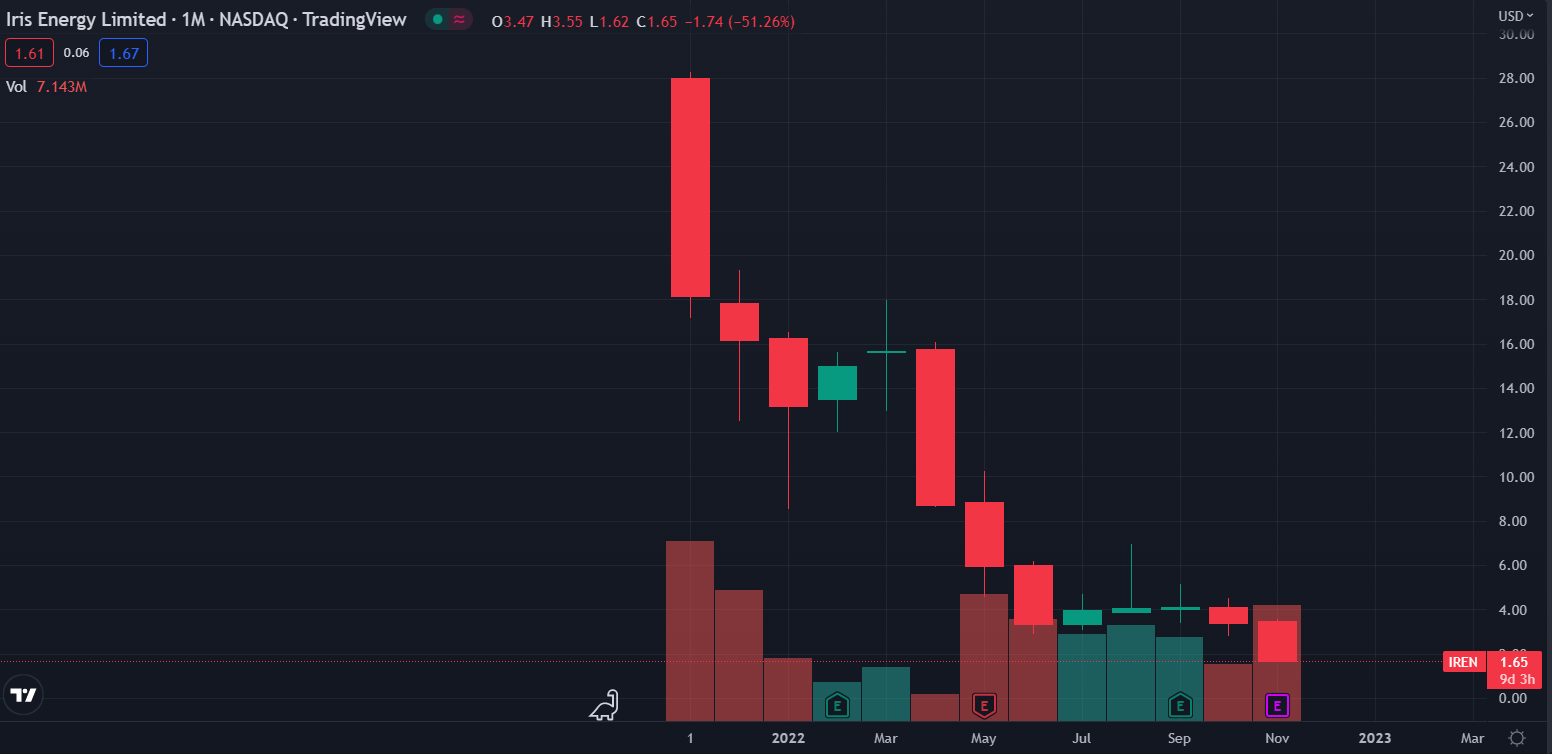 After the news of Iris Energy’s default hit the wires, its stock price fell over 12% in intraday trading to $1.64.
