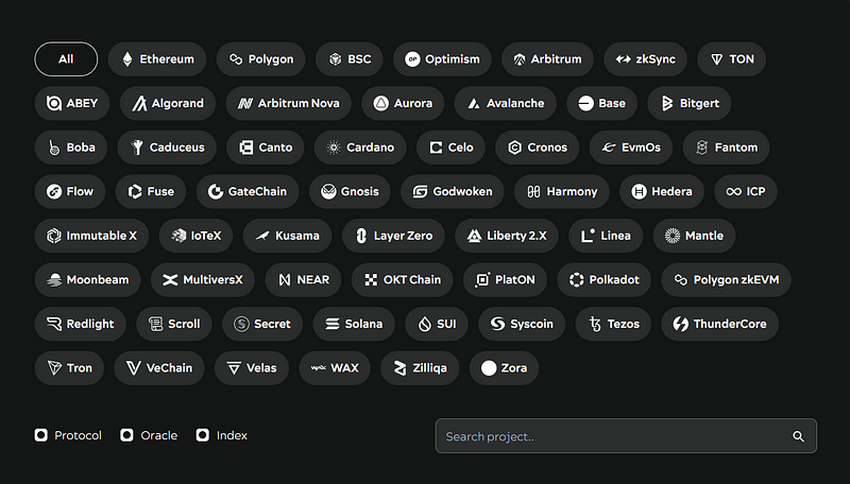 - Analyze the projects you are interested in, quickly find and learn documentation, socials, sites or dApps.