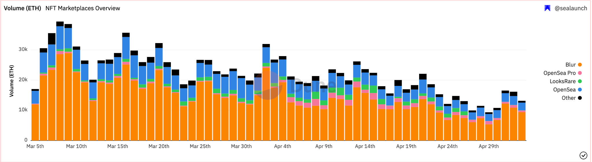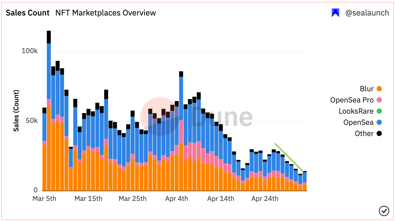 The latest data from Dune says that the average sale size on the Blur marketplace is 6.309 ETH. Hence, the sale of DeGod #5996 is roughly 11 times more than the average sale size.