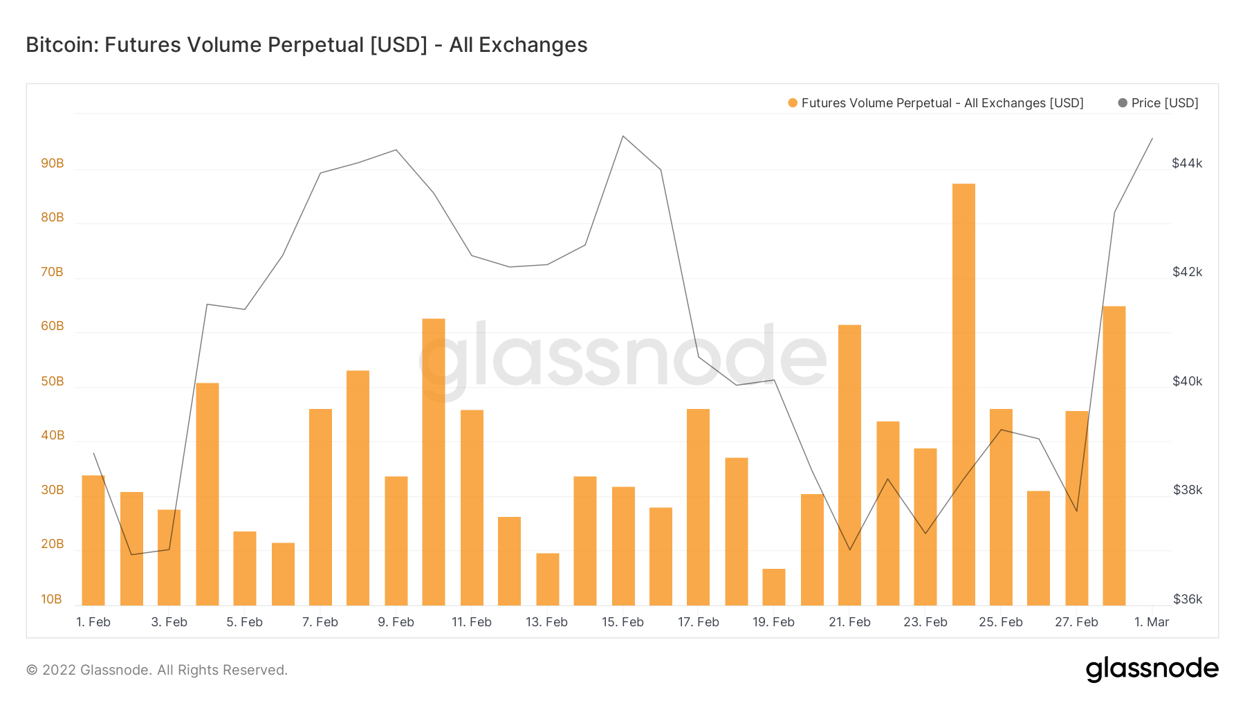 In addition to this, the volume on futures is not that big, and considerably lags that of Feb 24. On Feb 28, there was a total volume of $70 billion, which was roughly 30% lower than the $98 billion on Feb 24.