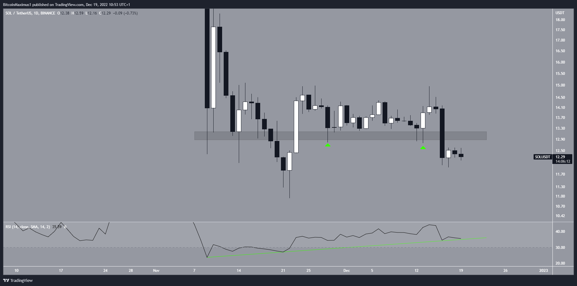 The Solana price broke down from the line amid a large bearish candlestick on Dec. 16. It bounced slightly over the next 24 hours but failed to initiate an upward movement.