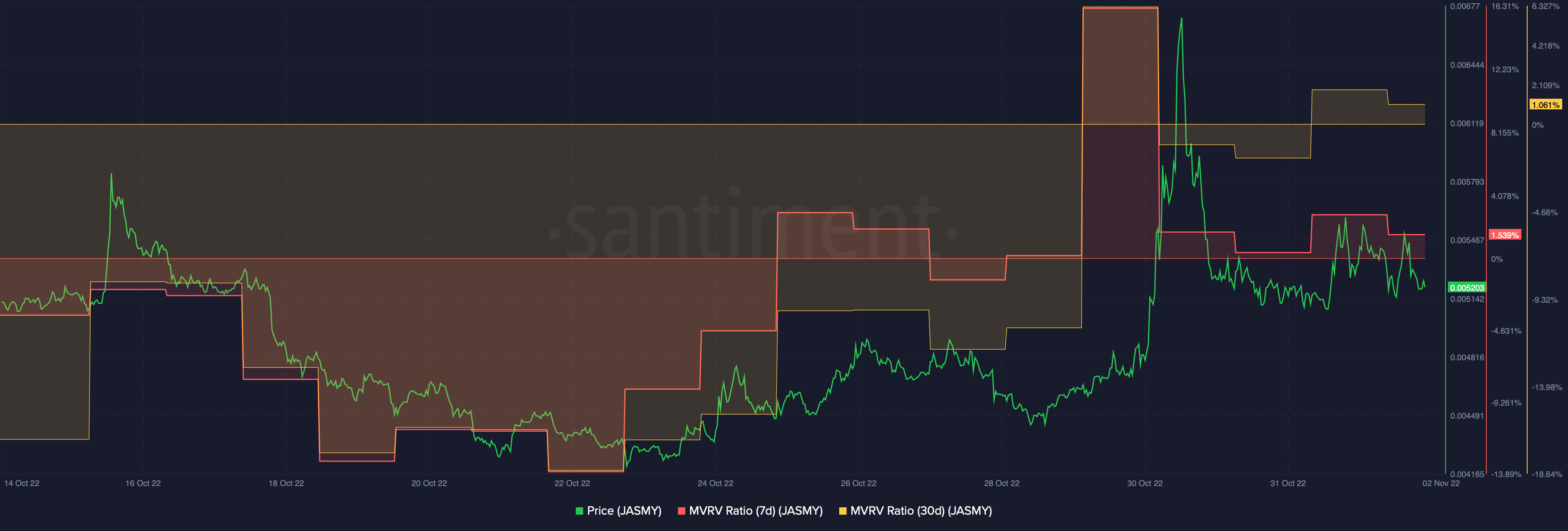 It wouldn’t be wrong to say that JasmyCoin’s price did start its journey on a pretty high note. However, data from Messari suggested that at the time of writing, JASMY’s price was down 99.99% from its all-time high price of $93.35.