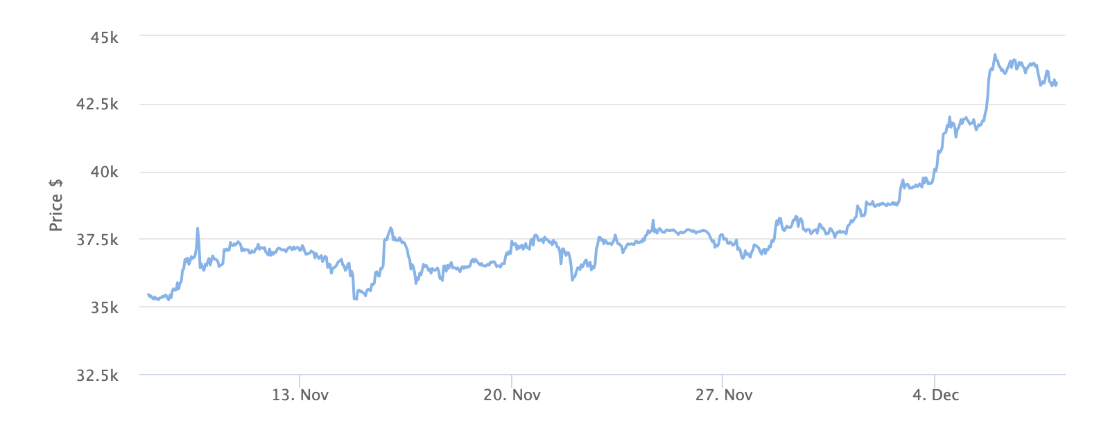 However, Bitcoin’s price has surged over the past month. At the time of publication, Bitcoin’s price is $43,222.