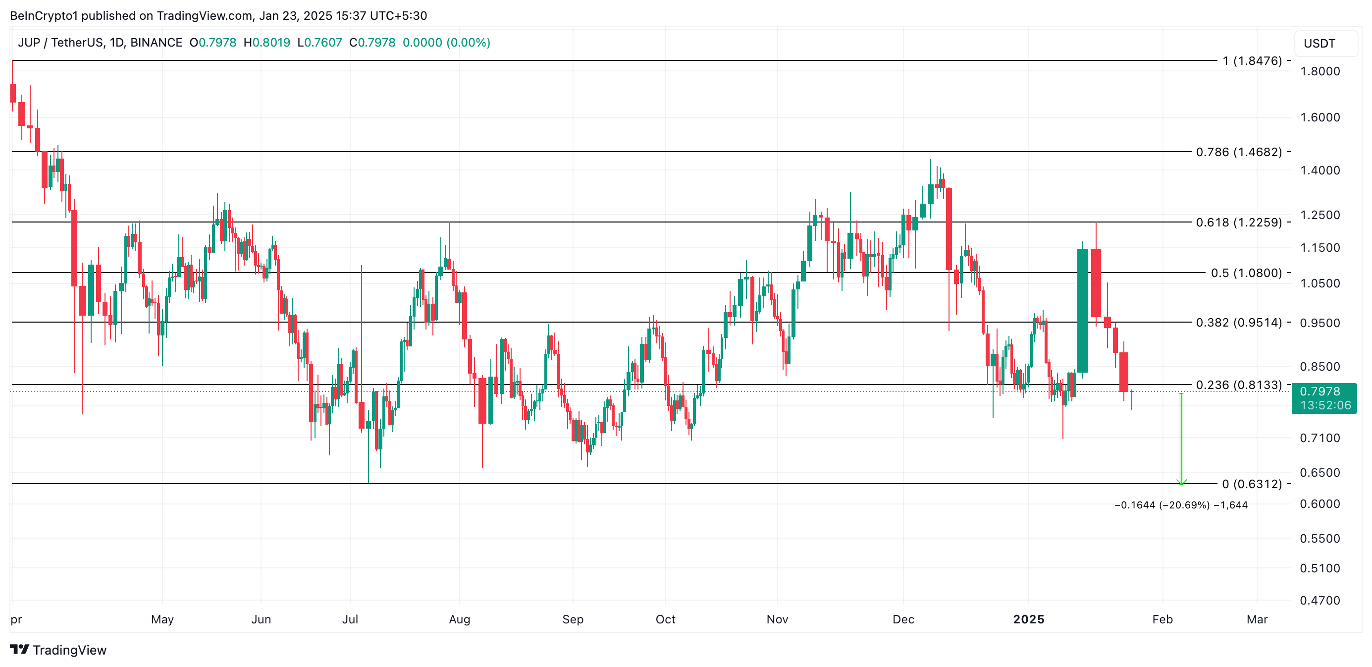 If bearish pressure strengthens, JUP’s price could fall to $0.63, a low it last reached last July. This represents a 21% drop from its current value.