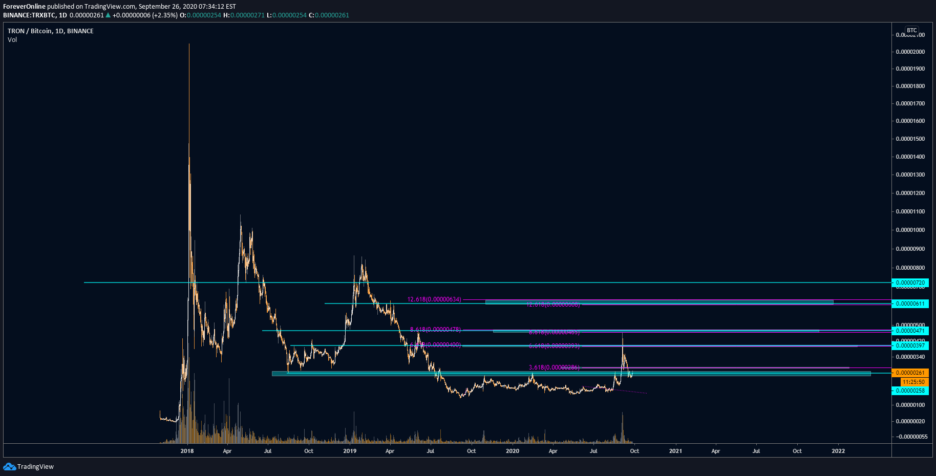 Then again, a number of technical analysts are now bullish on Tron. It has broken out and is just barely holding resistance at 259 satoshis. This, says Trading View pro “Foreveronline,” is the price that started the bear market. “Foreveronline” is long on TRX.