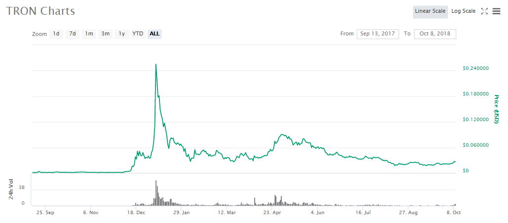 TRON has been a largely divisive project since its introduction to the altcoin market last September. TRON is building a platform for the development and launching of decentralized applications (dApps), similar to Ethereum and EOS.
