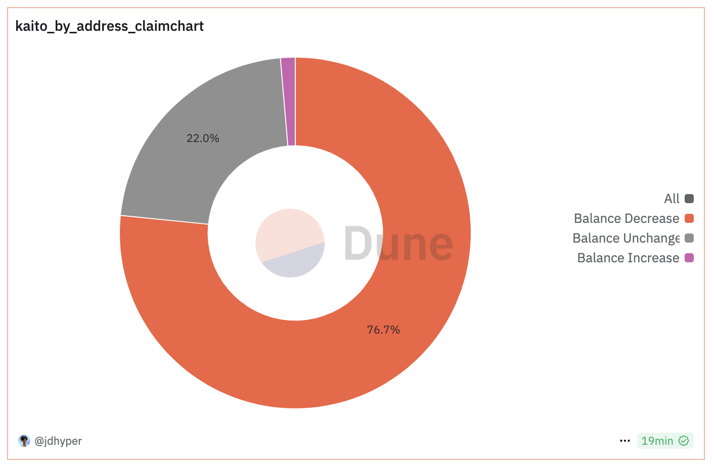 The broader on-chain activity shows a similar pattern, with 76.7% of all users who claimed KAITO experiencing a balance decrease.