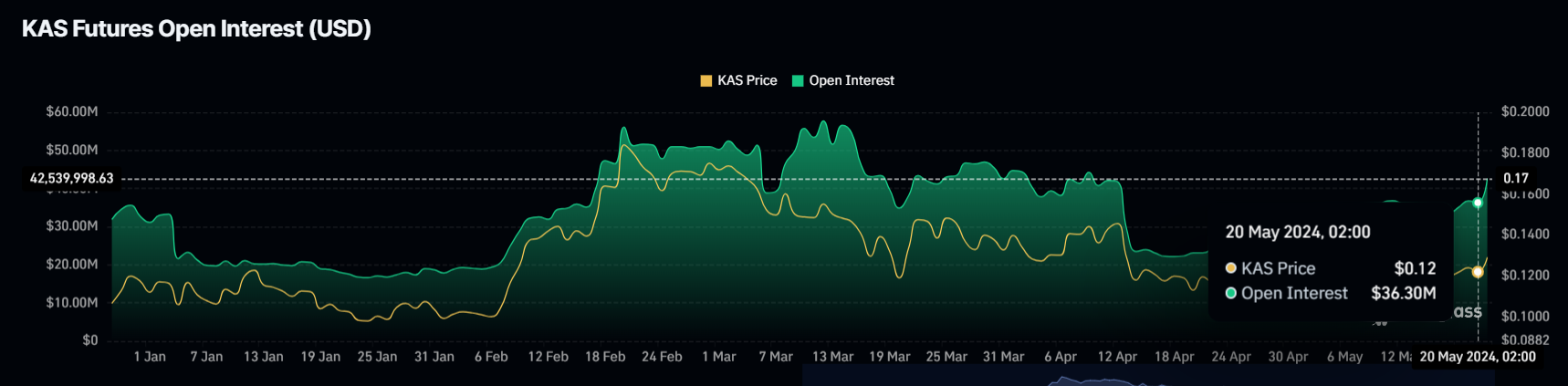 In the last 24 hours, the OI surged by $6 million, the highest within a single day this quarter. The last time Kaspa noted $6 million inflows into OI was in early April over a period of two weeks.