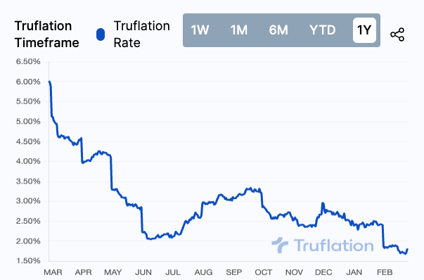 “[Truflation] was backed by a bunch of blockchain types, who I’m pretty sure expected to “prove” that the BLS was understating inflation. Instead, their numbers keep coming in lower than the CPI,” Krugman said.