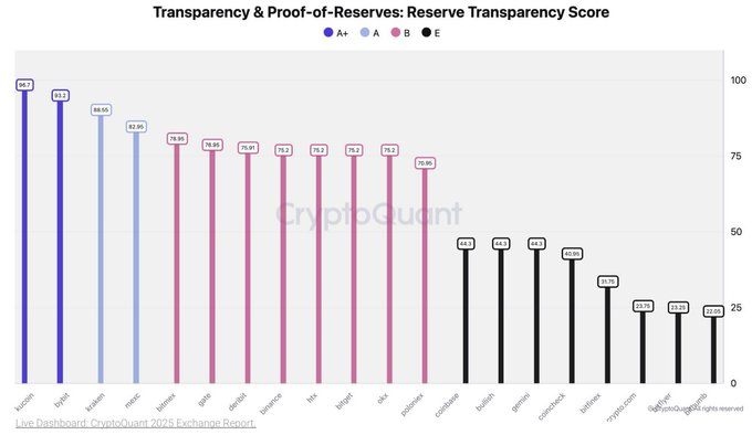 CryptoQuant’s Annual Exchange Leader Report 2025 is essentially a check on centralized exchanges, looking at how platforms stack up across structural transparency, trading performance, reserves, and proof-of-reserves (PoR) standards.
