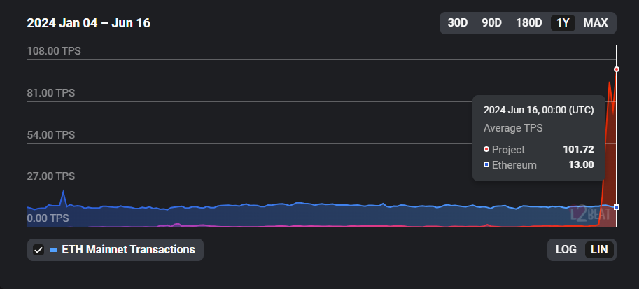 The Ethereum ecosystem recently saw an unprecedented surge in transactions per second (TPS). According to L2beat data, on June 16, Ethereum’s scaling networks, including both layer-2 (L2) and layer-3 (L3) solutions, achieved a combined 245.87 TPS. This figure translates to approximately 21.2 million transactions in a single day.