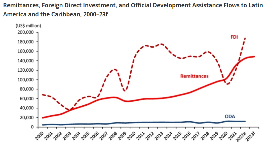 According to the World Bank, remittance flows into Latin America and the Caribbean reached $145 billion in 2022. Moreover, remittance volumes have shown more sustained growth than foreign investment, driven largely by migrant workers sending wages back to their families.