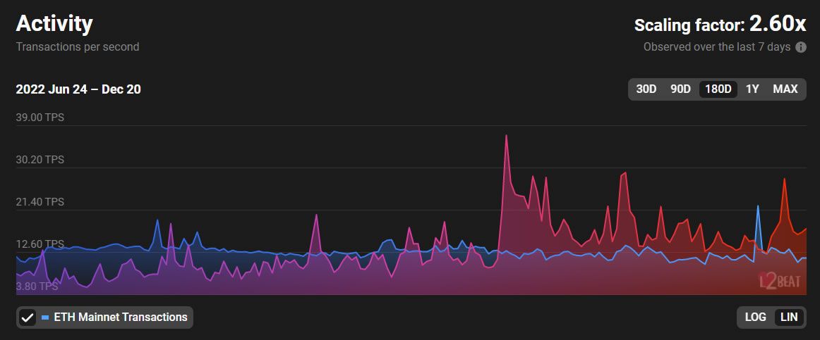 However, the difference is currently marginal, and the only real takeaway is that layer 2 TPS has been trending upward since August.