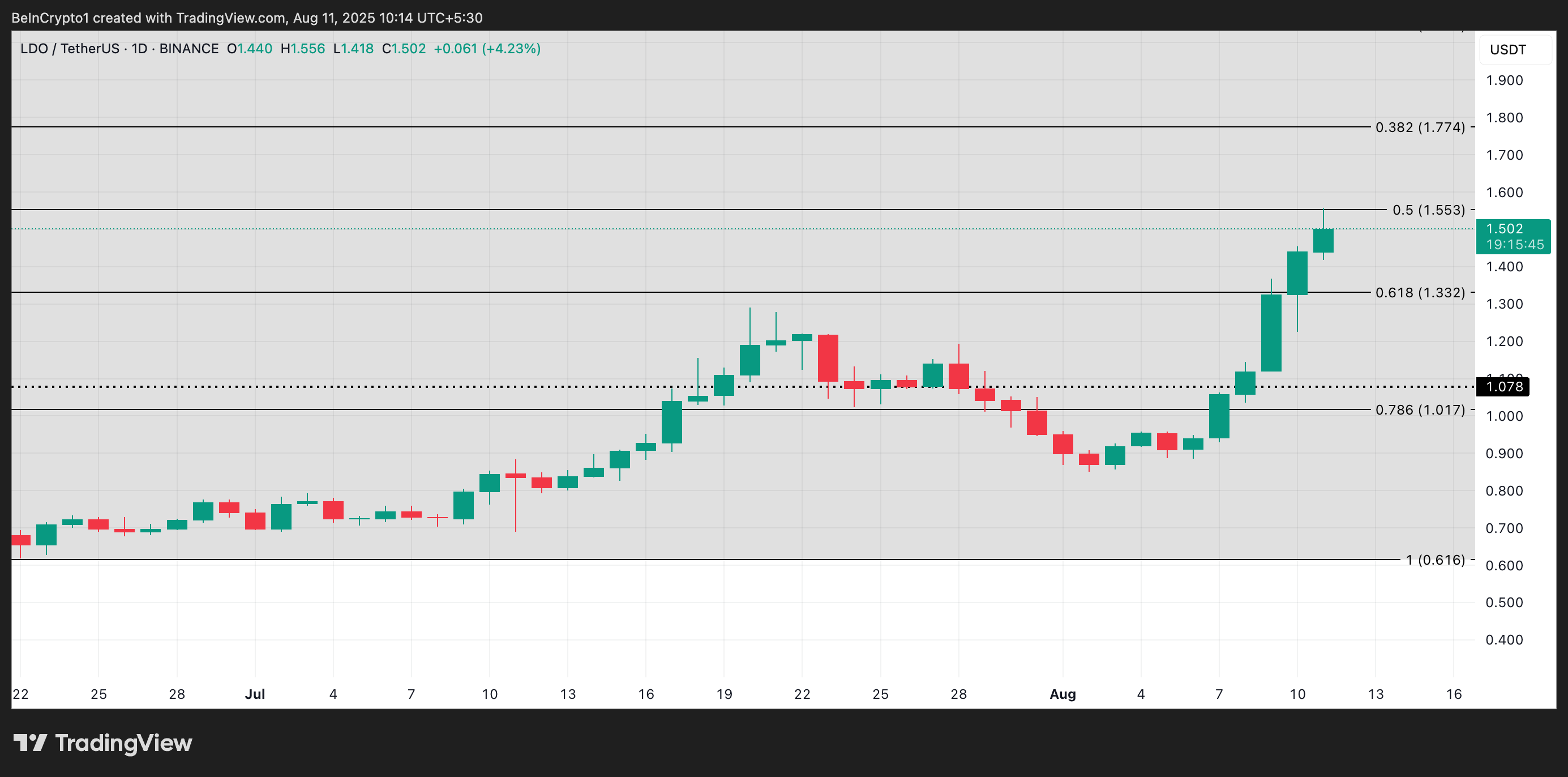 This surge in engagement suggests that market confidence in LDO’s momentum is building and could continue to hold steady.
