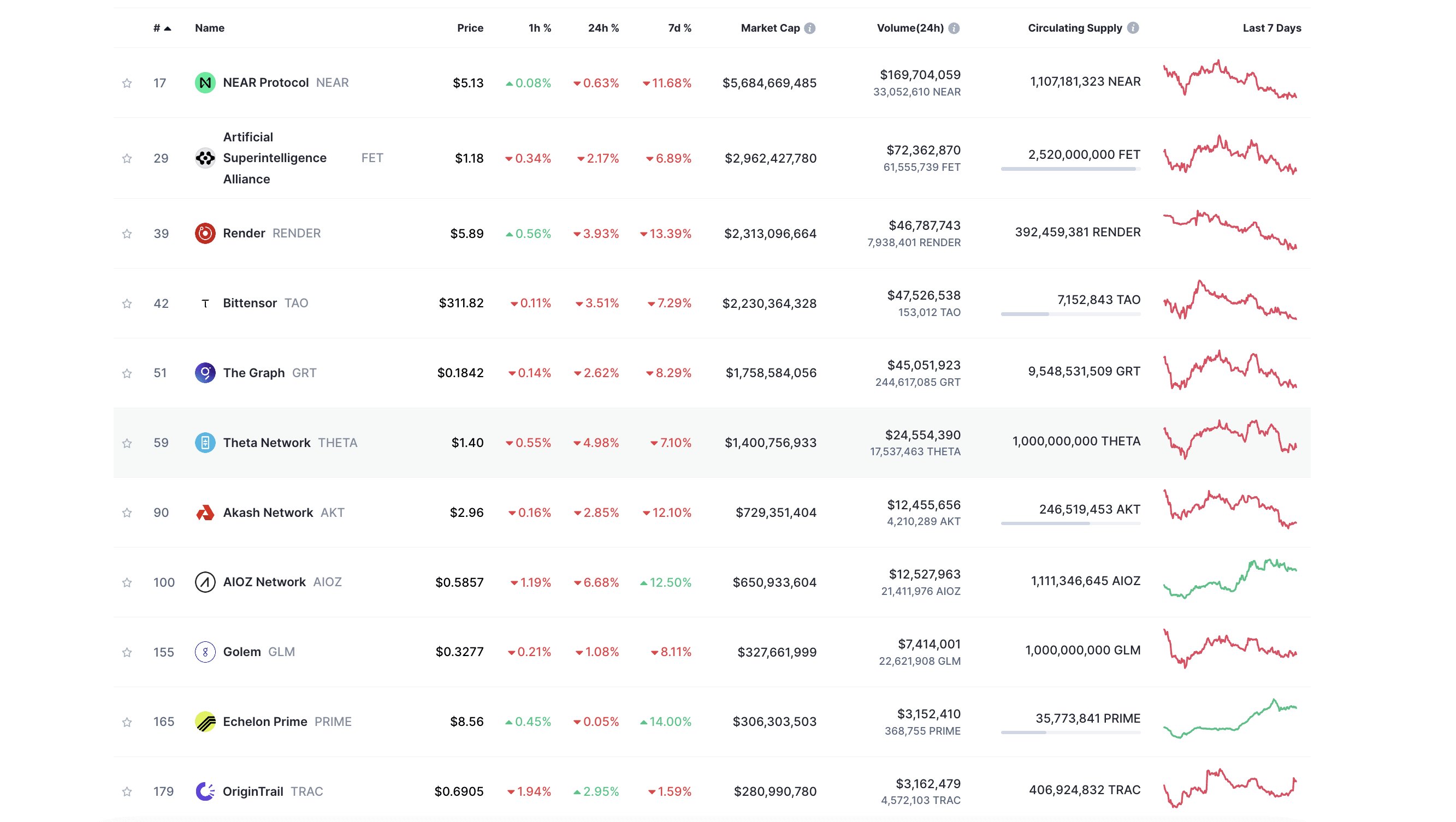 In terms of market cap, The Graph is the top AI cryptocurrency. It is a go-to web3 project meant for querying data from the likes of Ethereum. While it isn’t directly linked to AI in terms of service offering or deployment, it is a reliable solution for AI developers planning to develop a model by requesting data from the services associated with The Graph.