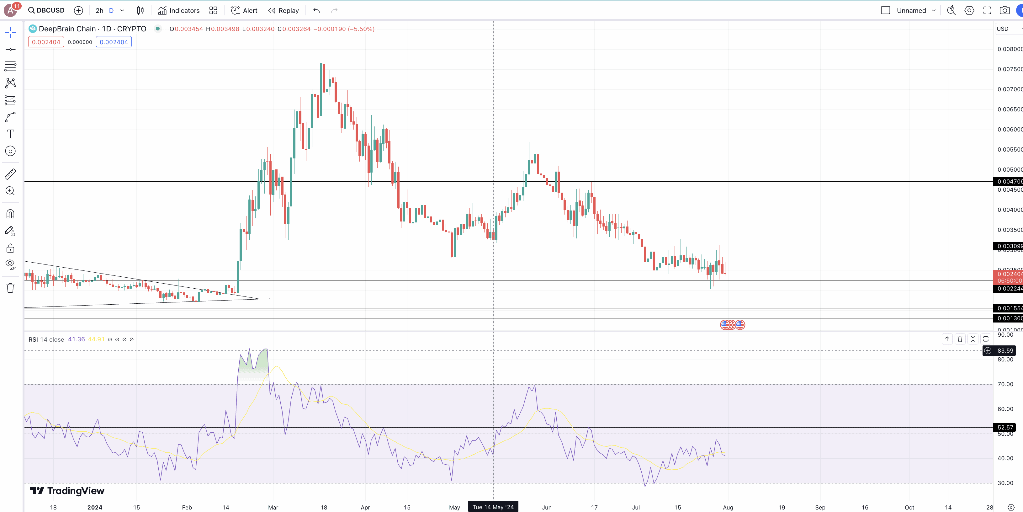 As of July-end 2024, DBC’s price action has been nothing but rangebound. A clear uptrend can be expected only if it manages to cross $0.0031. Even the RSI needs to support the upmove, crossing 53 in the process.