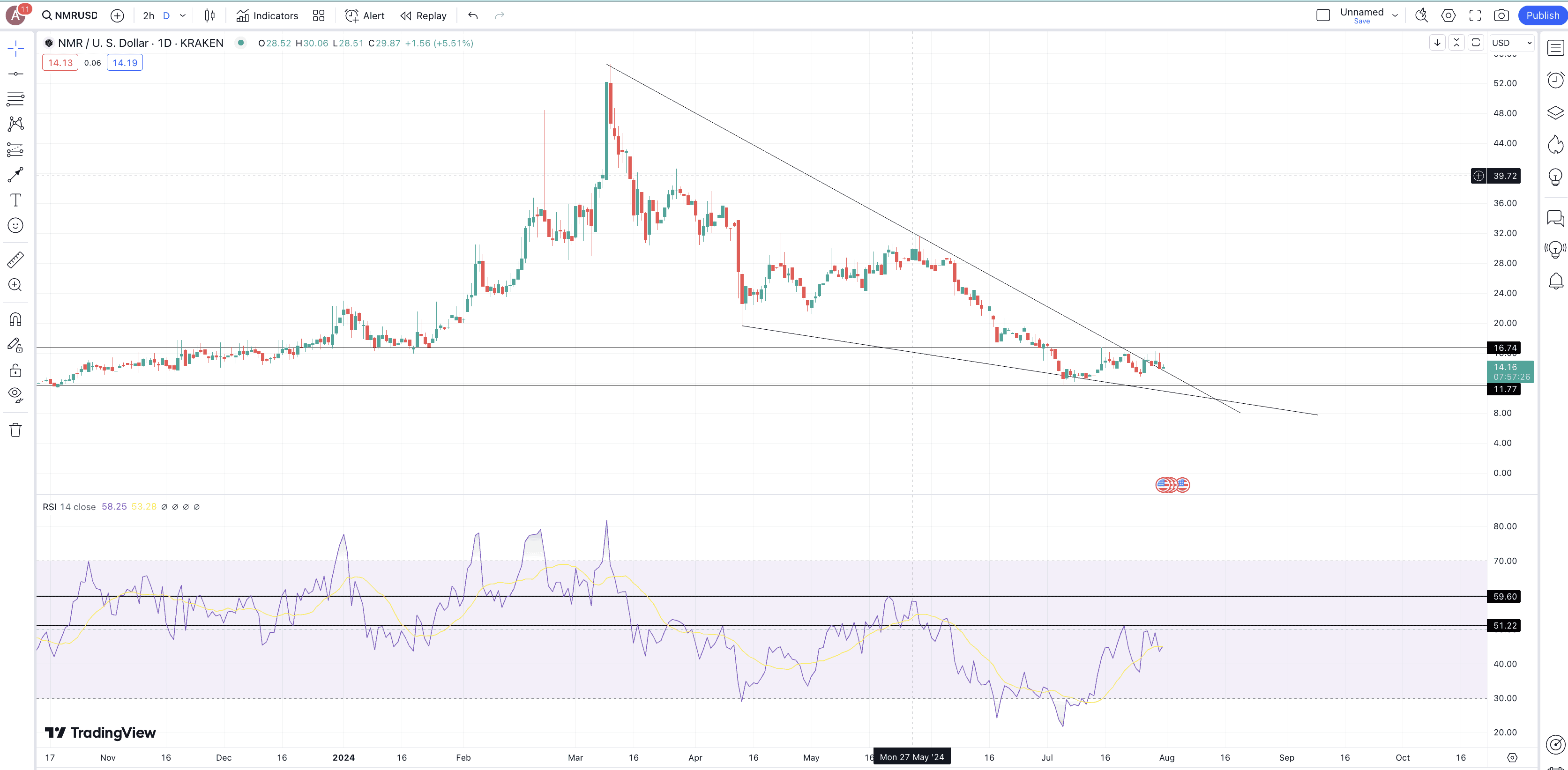 Or else, even $11.77 could have been in sight. Right now, as of July 2024, NMR has managed to hit $14.16. It needs to go past $16.74 for the next leg of the uptrend to start. And that too if the RSI manages to go from 50 to 60.
