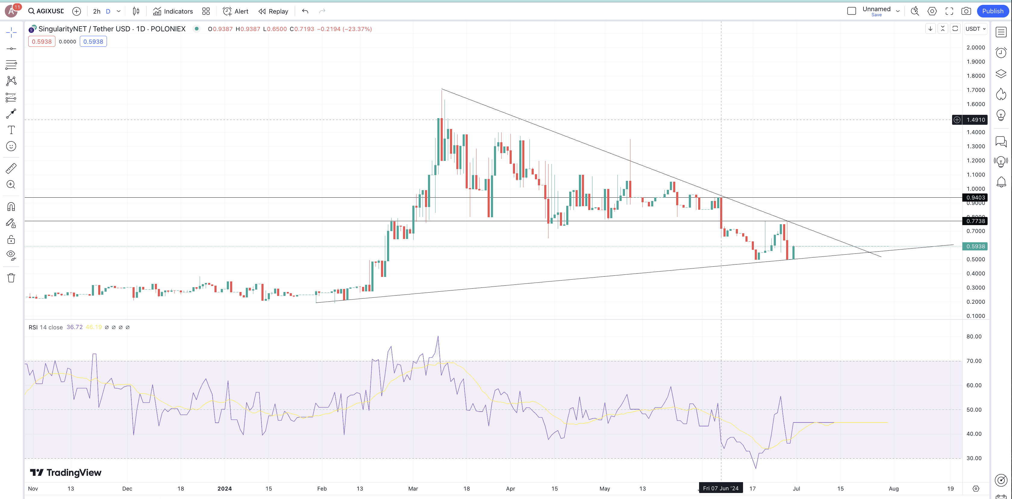 However, we are now in July 2024, and despite the questionable trading volume, the AGIX/USDT pair on Poloneix seems to be forming an interesting price-specific pattern.