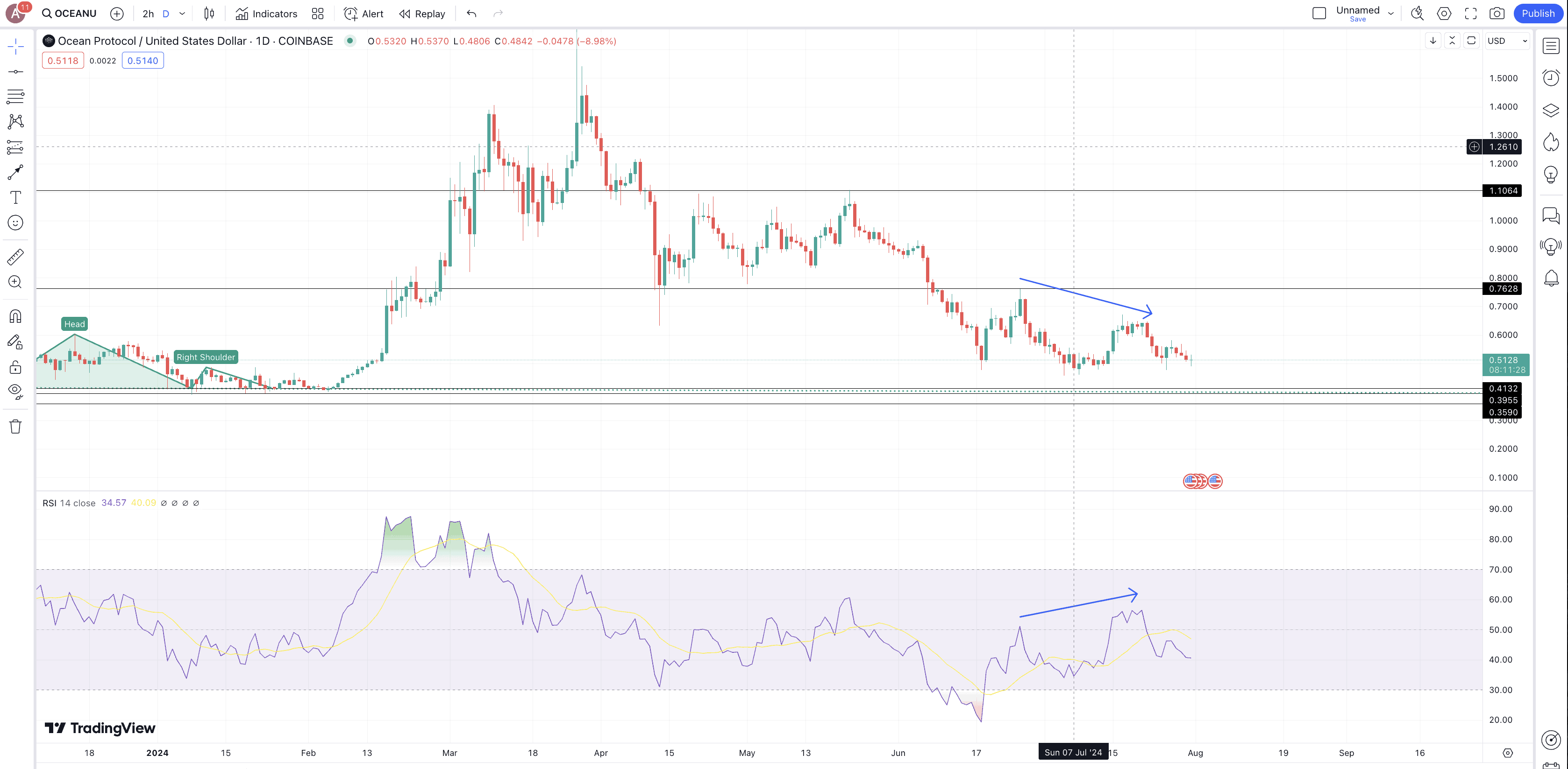 Even though it might seem that OCEAN is in a downtrend, as of July 2024, the RSI indicator is hinting at growing bullish momentum, courtesy of the bullish divergence. If bulls can push the prices higher than $0.76 in days to come, expect OCEAN to quickly aim for the $1.1 level.