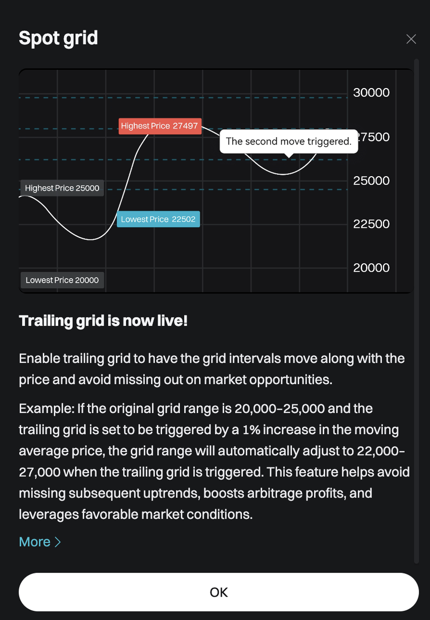 When to use: Use the Futures Grid Bot when you want to make use of price fluctuations to amp up your trades, precisely to amplify profits (and risks). Best for experienced traders who can manage futures volatility.