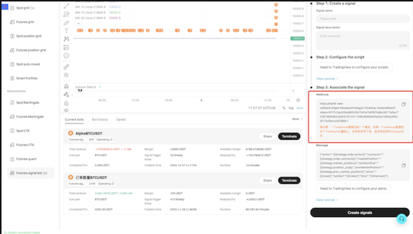- Copy the Bitget webhook URL and paste it into the webhook field.