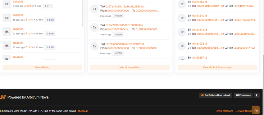 - Alternatively, visit Nova Arbiscan and scroll all the way down to add Arbitrum Nova. At the bottom right side of the website, click “Add Arbitrum Nova Network.”