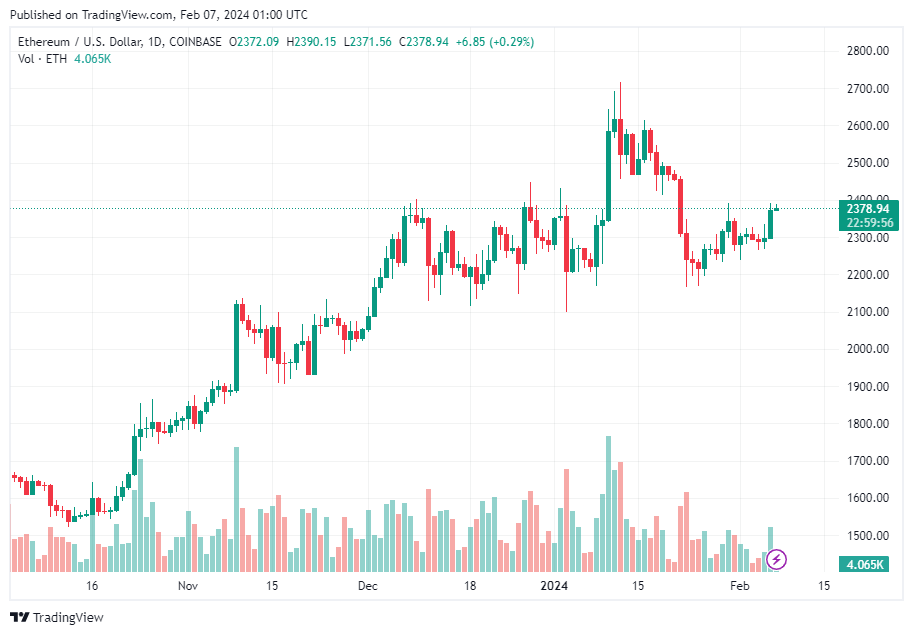 ETH reached its all-time high on Nov. 10, 2021, the same day BTC did. The token has not decreased significantly in price since then. Many see Ethereum as the value layer that bootstraps many other blockchains. As a result, some have even joked that many blockchains will become sidechains to Ethereum in the future.