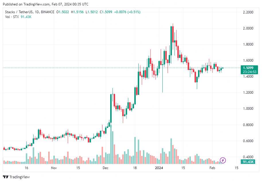 Stacks (formerly Blockstack) is a Bitcoin layer-2 (L2) that allows for creating smart contracts and DApps leveraging the Bitcoin blockchain as a base layer. The project gained prominence as the first cryptocurrency to receive SEC qualification for its token offering.