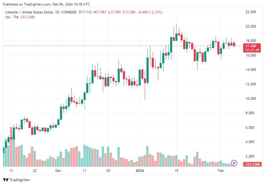 Celestia (TIA) is the token for the eponymously named Celestia modular blockchain network. It was founded by Mustafa Al-Bassam, a computer science Ph.D. and hacker, and Ismail Khoffi, a software engineer.