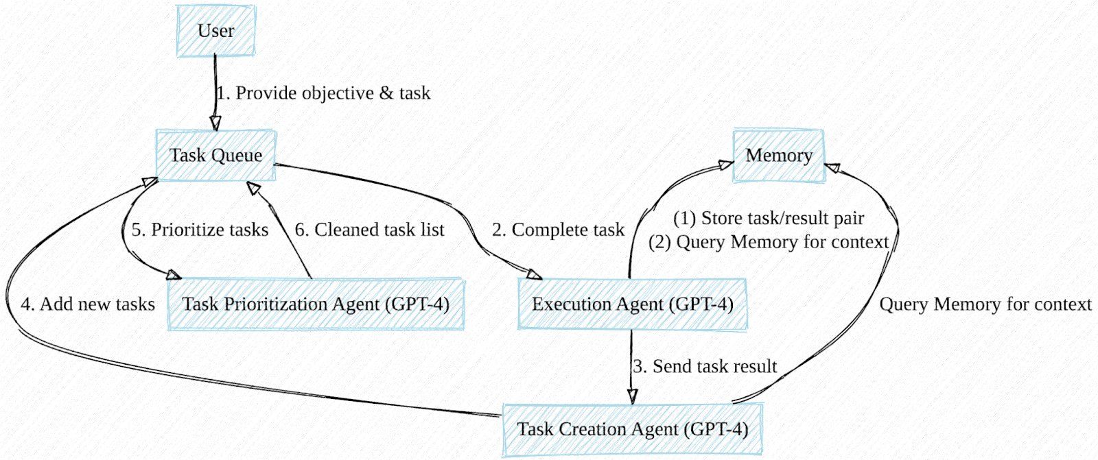 At its core, BabyAGI is a language model interfacing with a task list. It stores completed tasks in a database, serving as the model’s “memory” for context when formulating and executing new tasks. Though the base script lacks internet research or autonomous code execution capabilities, these have been introduced in derivative versions.
