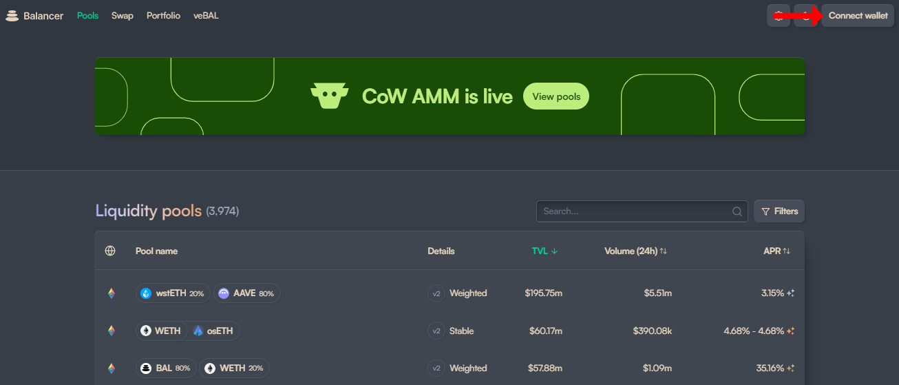 1. To begin, you must navigate to the Balancer website. Select “Launch App.”