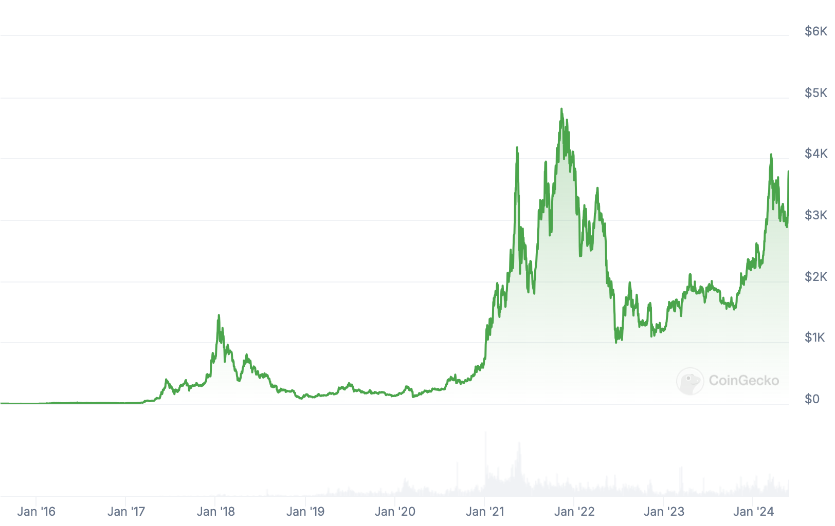 A well-known example is the returns generated by early investment in Ethereum, which increased from around $1 at its initial coin offering (ICO) in 2014 to over $4,000 at its peak in 2021.