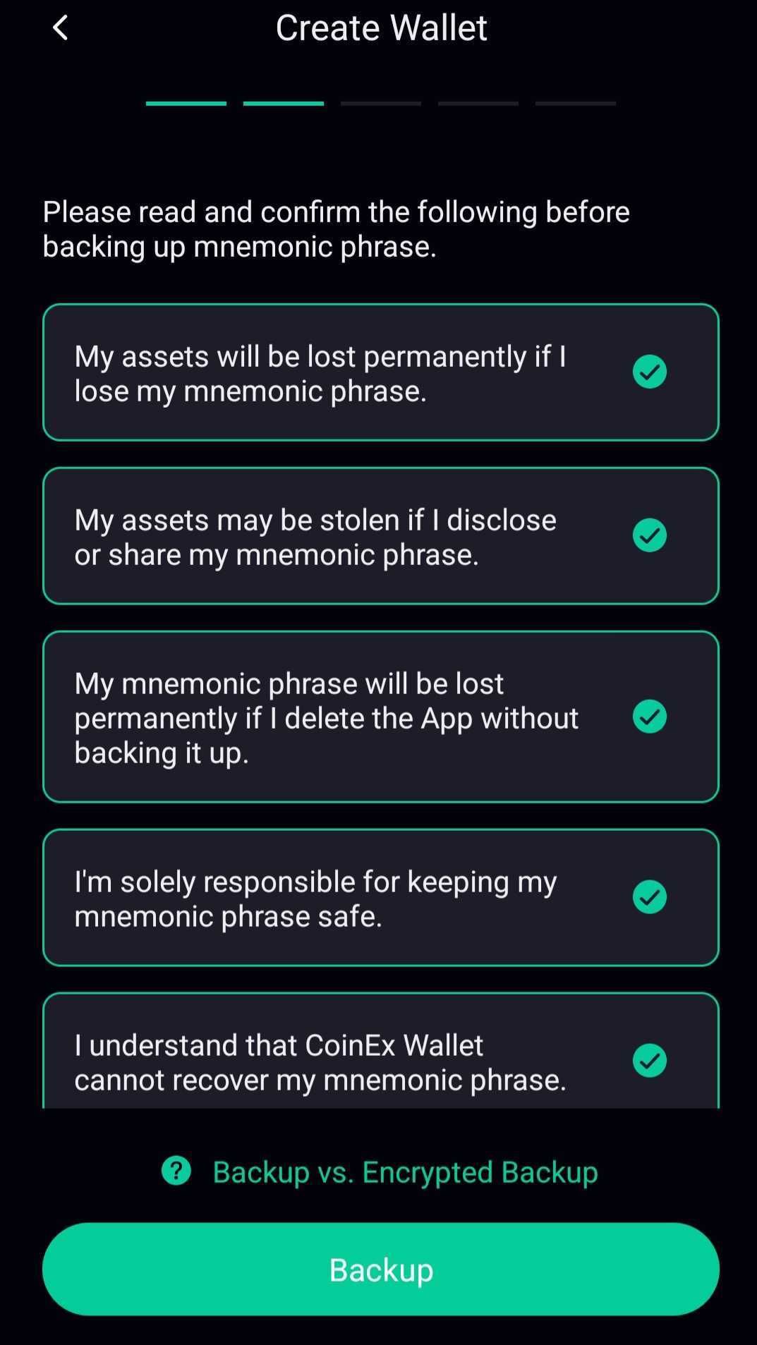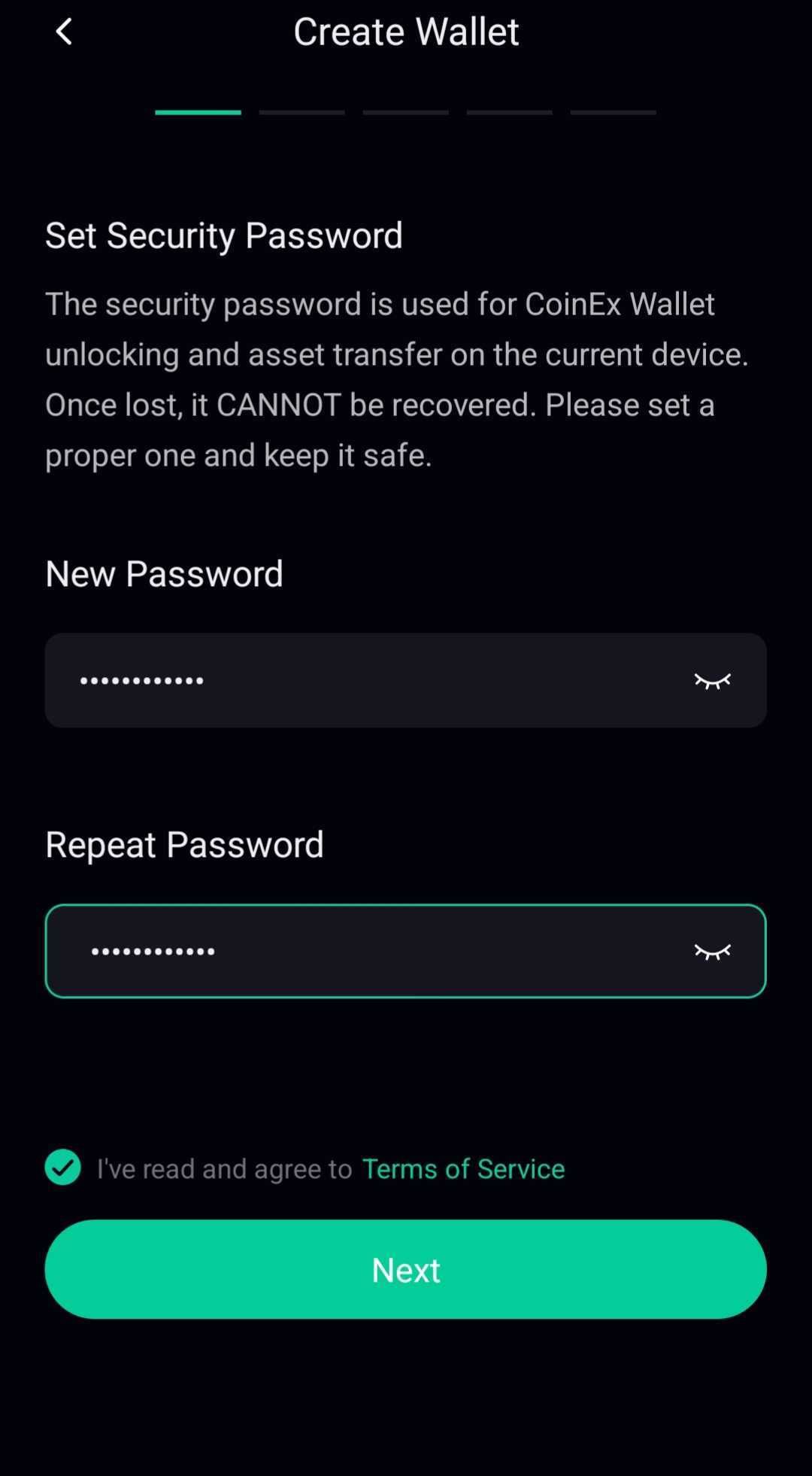 The process of setting up a crypto wallet is simple and tends to be similar regardless of the wallet you choose. For this example, we’ll use the CoinEx Wallet. Here’s a quick walkthrough to get you started: