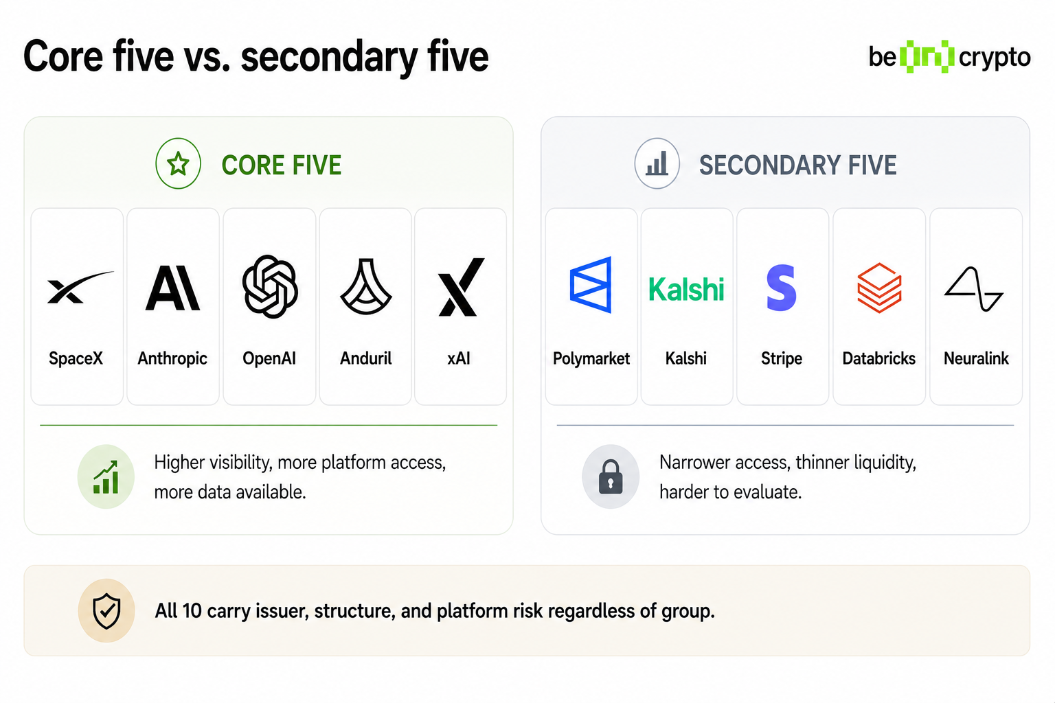 This guide evaluates some of the best pre-IPO tokens in 2026 by demand, liquidity, structure, valuation transparency, and holder rights. For a primer on how these products work, see BeInCrypto’s guide to pre-IPO tokens.