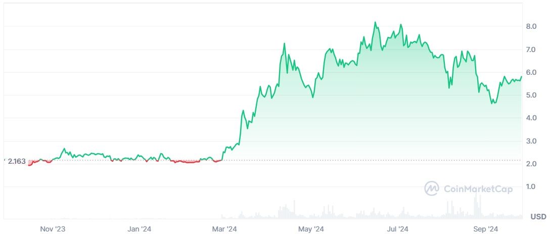 Toncoin has a maximum supply of 5.1 billion. As of September 26, 2024, the cryptocurrency is trading at $5.82, with a market capitalization of 14.7billion, as per CoinMarketCap data. The crypto reached an all-time high on April 11, 2024, hitting $7.65.