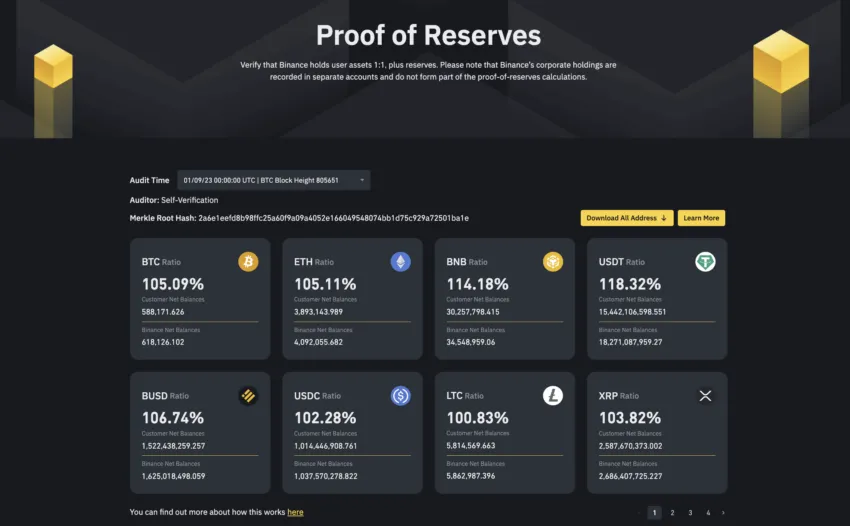 Binance is one of the first few exchanges to publish its Merkle Tree-powered proof-of-reserves with a self-auditing and updating mechanism.