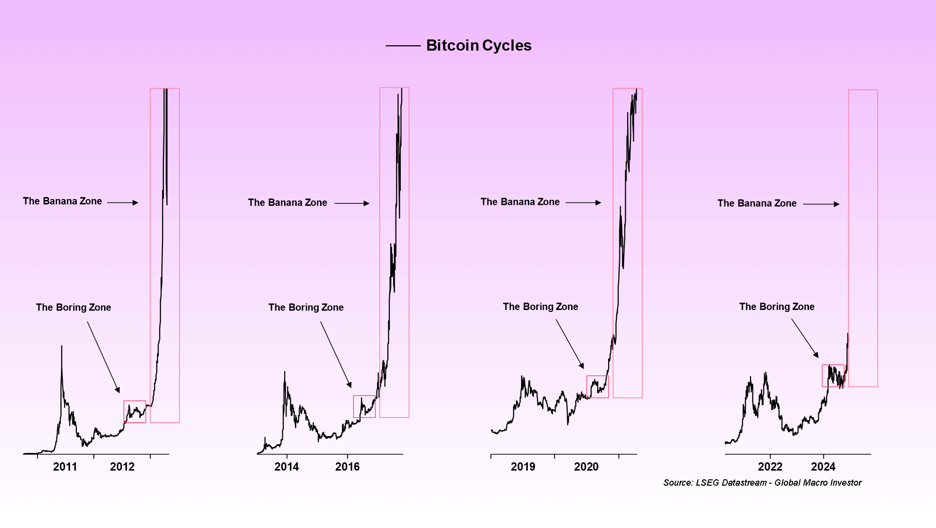 ➤ The Bitcoin Banana Zone is a repeatable parabolic market cycle.