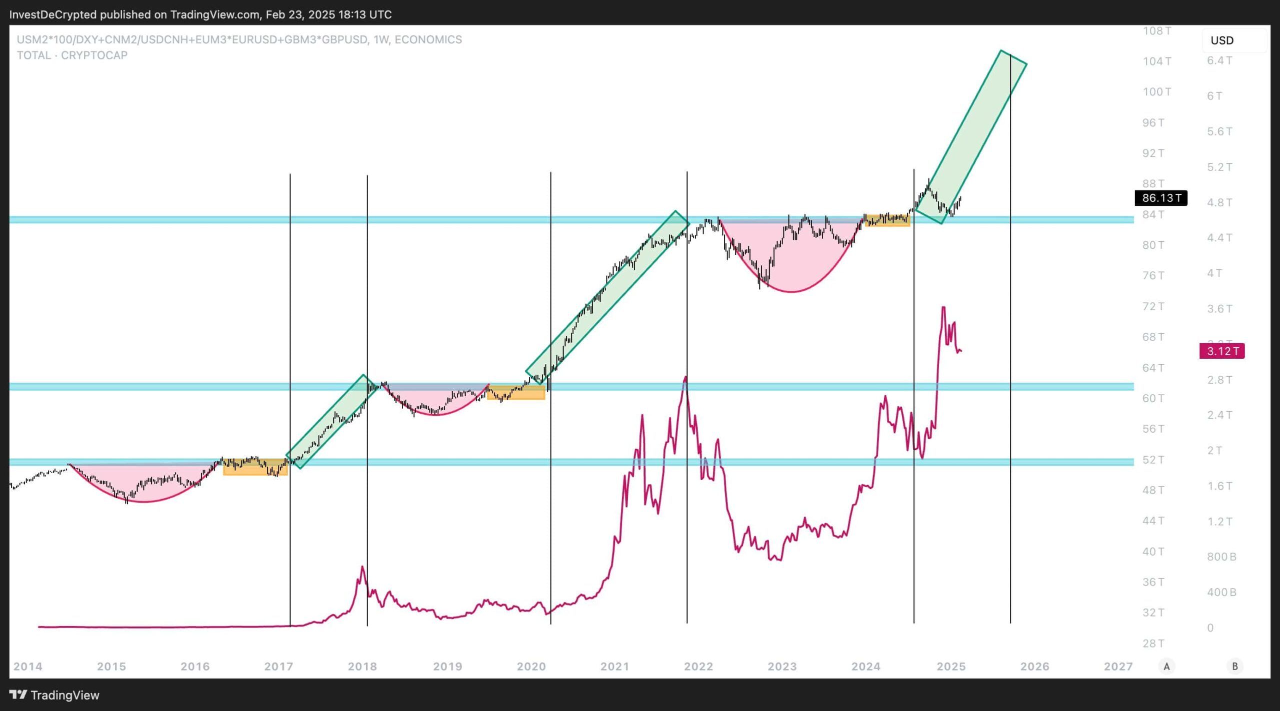 As of late February, BTC has corrected quite a bit from its January 2025 high of $108,786. This has has sparked debate about whether the Banana Zone is ending or if this is just another consolidation phase before the next leg up. Experts suggest Bitcoin is still in the Banana Zone, following historical market patterns, with the potential for another surge before the cycle peaks.